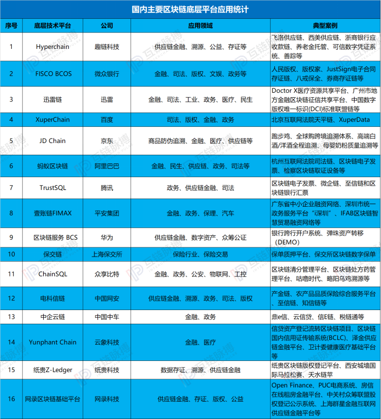 起底16例中国区块链底层平台:应用层分化明显 金融场景成必争之地