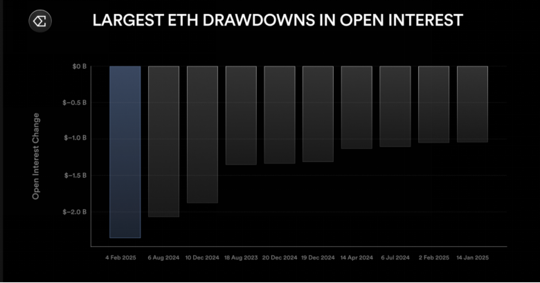 一周内,ETH未平仓合约减少超过50亿美元,周跌幅超过25%。